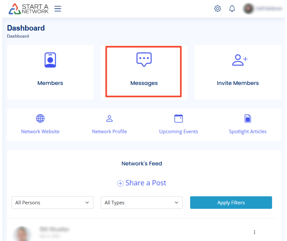 - From the dashboard, click the “Message” tile in the center or the “Messages” link in the left menu. Both options lead to the same page.