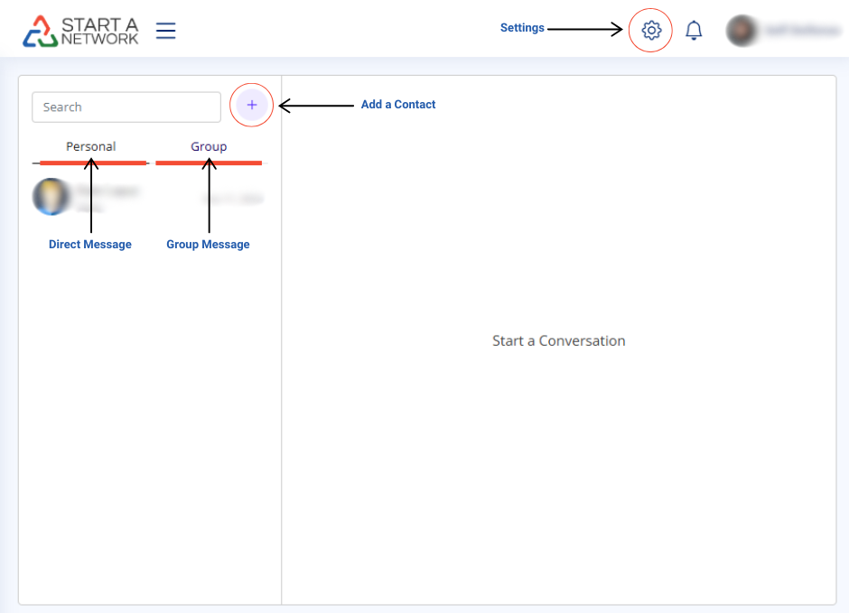 - Direct Messages: Click the personal icon for a list.
