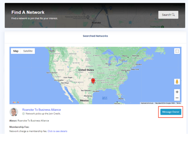 - When you find a network you want to join, click Message Network Owner.